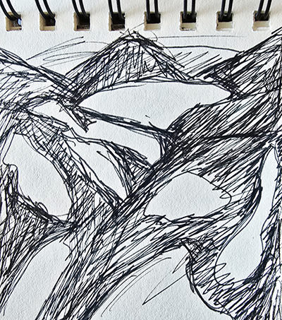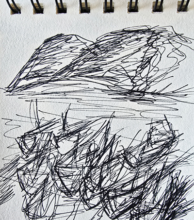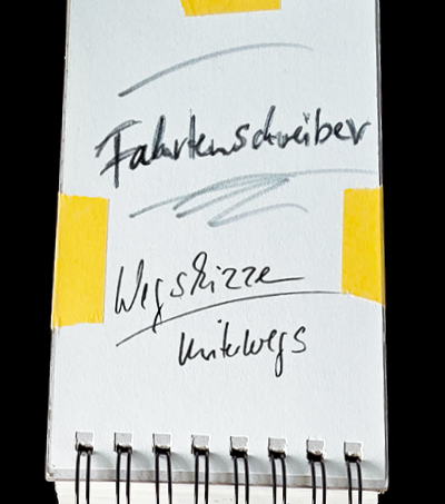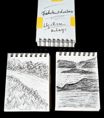 Fahrtenschreiber > Eindrücke unmittelbar festgehalten im Vorbeifahren. Über 200 Road-Skizzen schnell und unzensiert aufs Blatt gebracht.